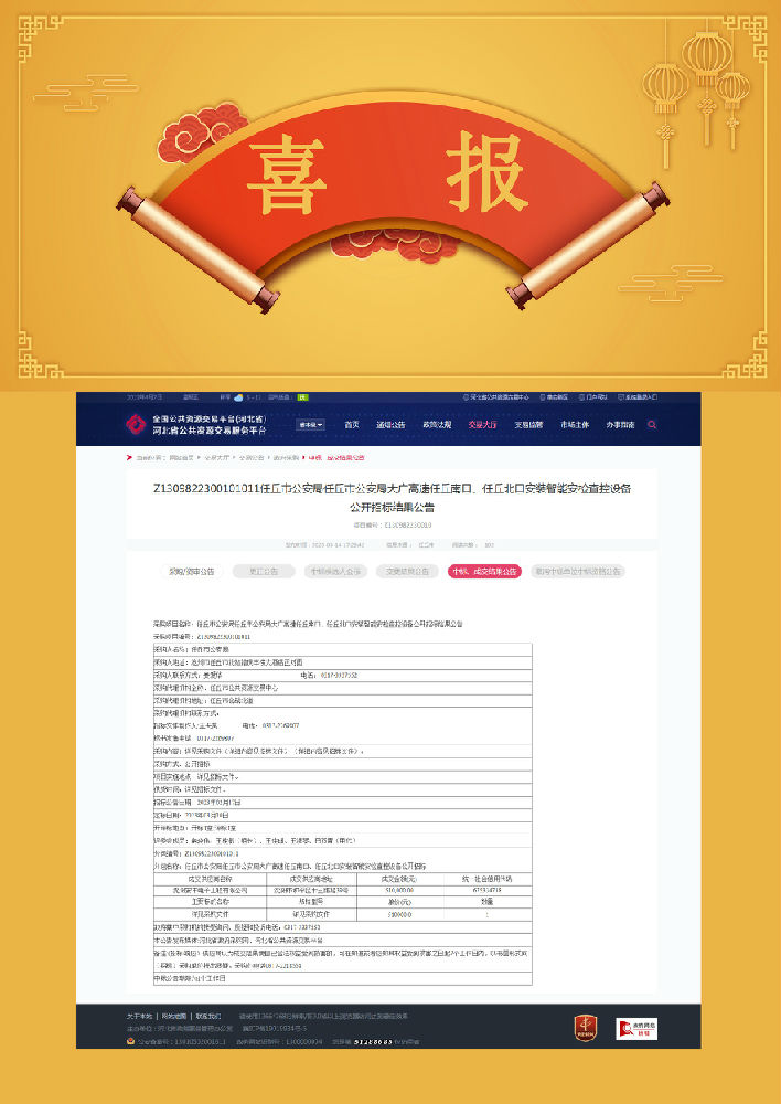 賀:任丘大廣高速任丘南口、任丘北口安裝智能安檢查控設備采購項目中標!