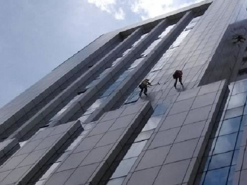 在需清洗墻面頂部選定安全固定點,固定主繩、安全繩。 工作人員穿戴工作衣帽和工作鞋。
